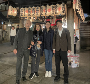 串カツでお腹を満たした後は、大阪が誇る歴史的建造物、四天王寺へ。聖徳太子が創建した日本仏教のルーツとも言える場所に、社長ご一家は深く感動していました。